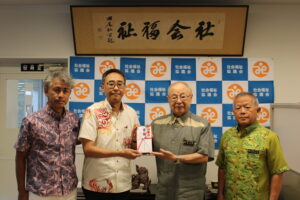 令和7年9月19日(金)、一般社団法人沖縄県軍用地等地主会連合会様(会長 照屋 清秀様)から、「人材育成、社会福祉等の社会貢献活動を支援する事業」の一環として、本会の福祉活動の推進に役立ててほしいと、500,000円を御 … 続きを読む