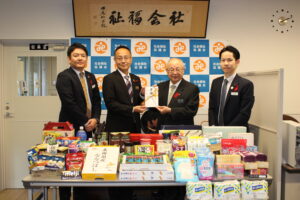 令和8年2月17日、琉球銀行グループの従業員の皆様より、フードドライブを通じて食料品や衛生用品など、多くの寄贈品をご提供いただきました。温かいご支援に、心より感謝申し上げます。お寄せいただいた品々は、本会のこどもの居場所ネットワークを通じて県内のこどもの居場所へ配分し、大切に活用させていただきます。今回の取り組みにご協力いただきました皆様に、改めて深く御礼申し上げます。